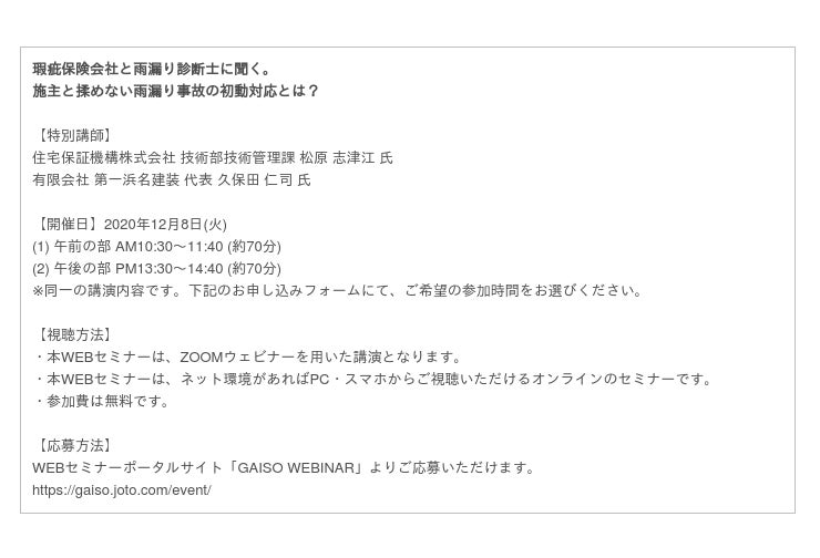 火災保険は、火災や爆発の他、台風や洪水等の自然災害も補償対象となります。火災保険と言えば、建物や家財の全焼等の際に保険金が下りることを連想する方々も多いことでしょう。 一方、甚大な被害とは言えない「雨漏り」についても補償対象となります。. 雨漏り修理は火災保険で無料になる可能性が高い. 雨漏りが発生した場合、屋根・外壁など外装周りに何かしらの不具合が発生し、建物内に雨水が入り込んでしまっている状態です。. 雨漏りを発生させる条件として、建築時の施工不良・経年劣化などがありますが、その中でも台風・強風・大雨・雹などの自然災害の影響によって、雨漏りがよく発生します。. これら. 雨漏り修理の相談、または、火災保険が使えるのか無料診断したい場合は、 0120-164-917(平日10-18時) に電話をかけて頂き、電話口で 「雨漏り修理の相談がしたい」 とお伝え頂ければ嬉しいです。 雨漏り 保険 ※ 事前に情報を伝えた上でご相談されたい場合はフォームをご利用ください。. 雨漏り修理に火災保険が使えるかの目安・申請の手順を解説。雨漏りが火災保険 の対象となるには自然災害で屋根や外壁などが損傷していることが条件となり .